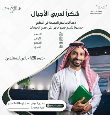من علّم وصبر وربّى، يستحق أن يعيش أجمل الأوقات. استمتعوا معنا بخصم 20% كعربون امتنان من جيازيل لكل معلم ومعلمة.