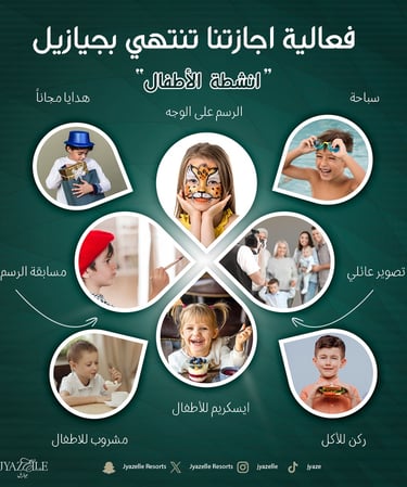 لا شيء يساوي ضحكة طفل. لهذا وفرنا لهم أجواء آمنة وممتعة: من المسابح المخصصة لهم، إلى أنشطة الإبداع والرسم، مع هدايا وجلسات تصوير لتبقى اللحظات خالدة. نحن نهتم بأطفالكم وكأنهم أطفالنا.